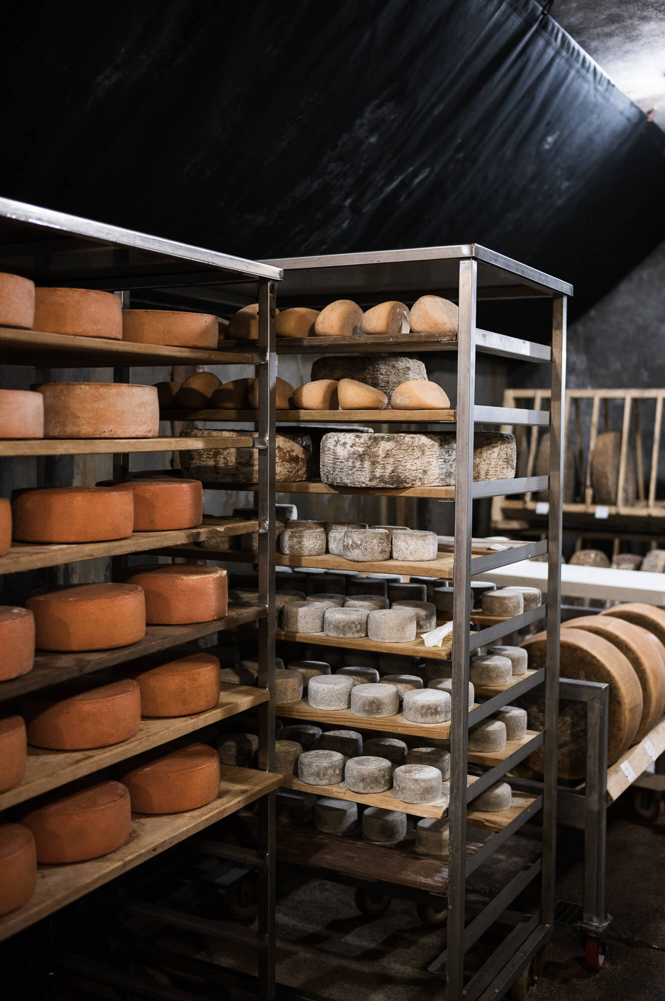 Unerlässlich ist die Konstanz von Temperatur, Luftfeuchtigkeit, Belüftung und Dunkelheit während des gesamten Jahres. Der Ort beeinflusst maßgeblich das Endergebnis – es ist die Kunst des Affineurs, den passenden Raum zu finden, auszustatten und an die jeweiligen Käsetypologien anzupassen.